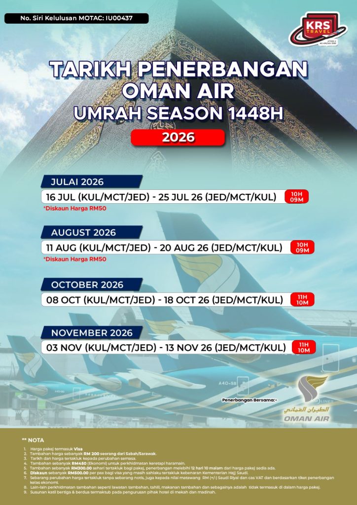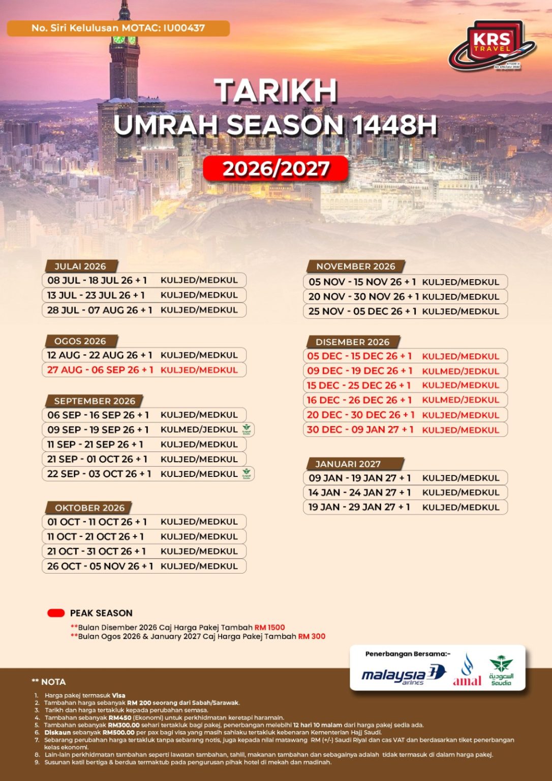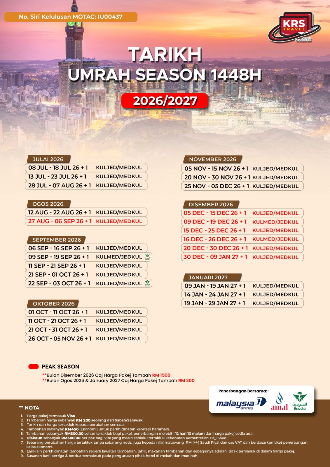 DETAIL & TARIKH PAKEJ UMRAH 1448H