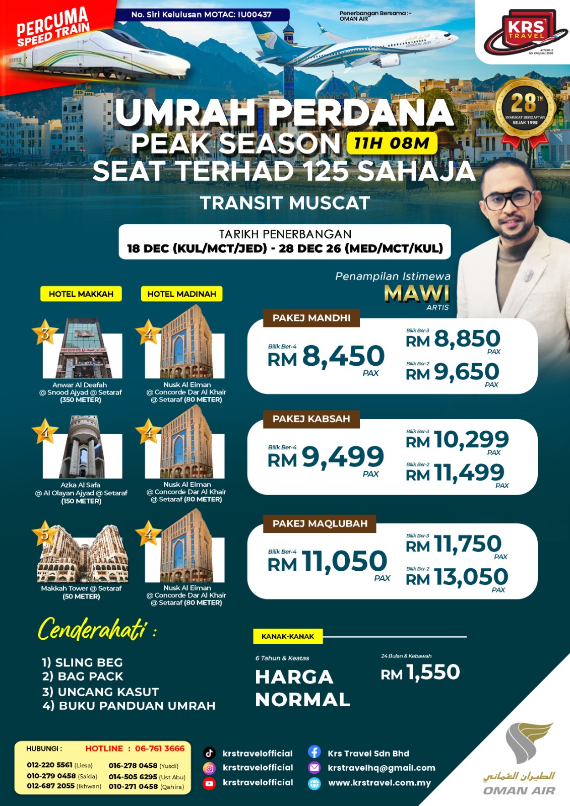 PAKEJ UMRAH PERDANA KRS 2026 - TRANSIT MUSCAT (terhad kepada 125 seat sahaja!)